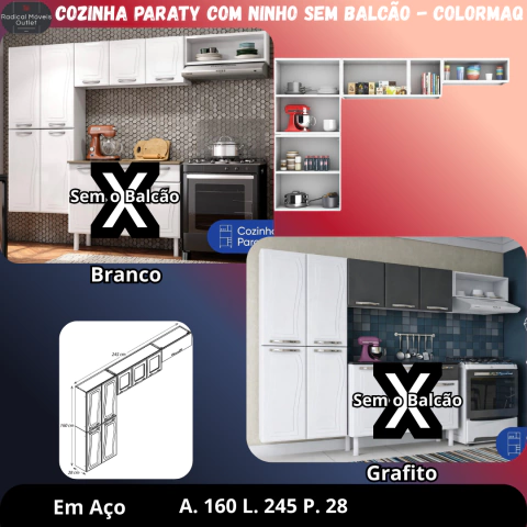 A Cozinha Paraty P4P-AP3P com Nicho, da Colormaq, é ideal para quem procura resistência, praticidade e organização, com a vantagem de ser 100% em aço. Perfeita para cozinhas compactas ou para quem já possui balcão/pia instalada.